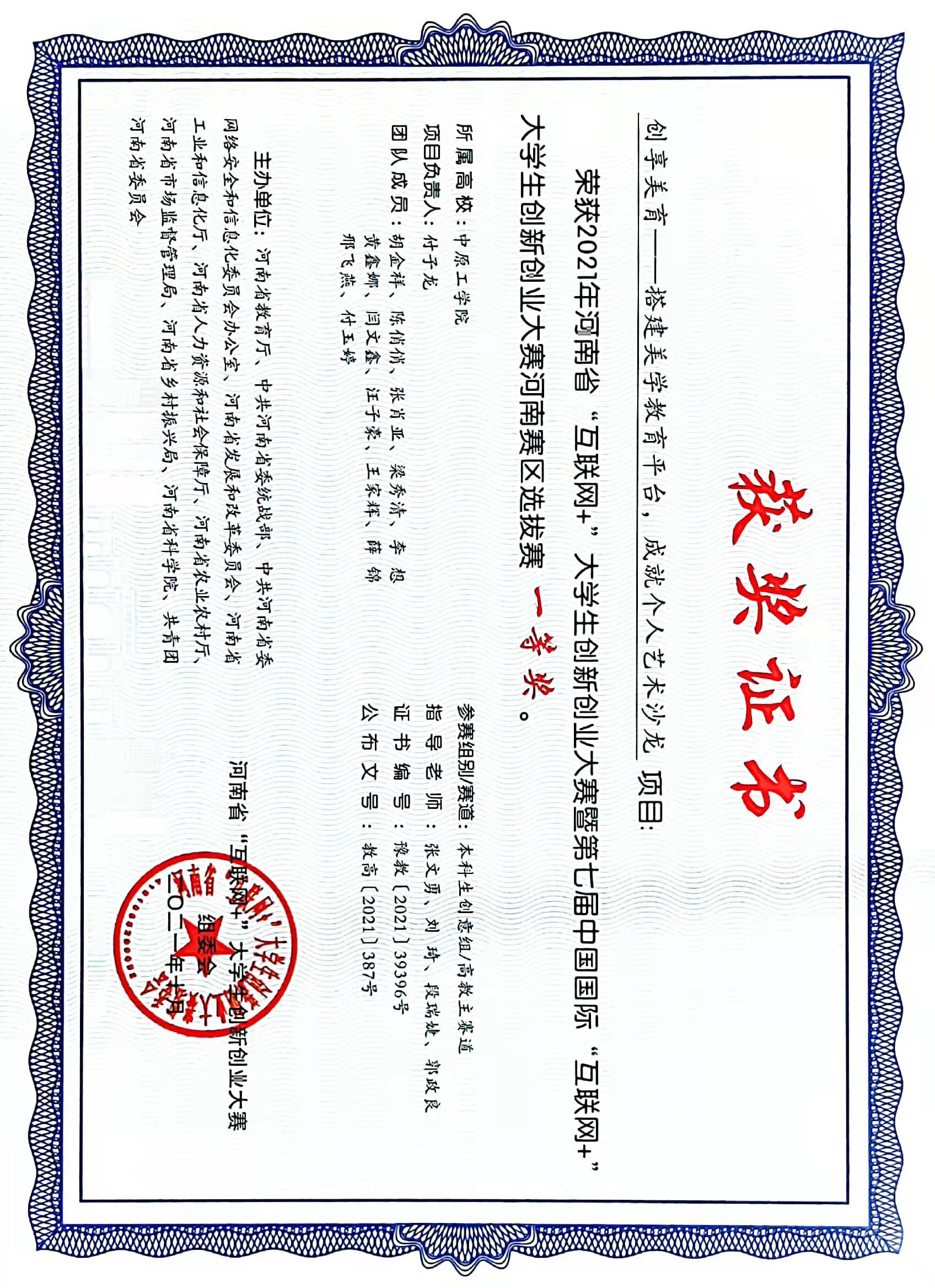 他刻苦、努力,积极向上,辅修法学双学位,以第一作者身份撰写期刊论文,参与中原工学院科研课题研究,申请和注册4项实用新型专利以及3项计算机软件著作权;他自强、勤奋,勇于探索,曾连续两届获得商业精英挑战赛(B类学科竞赛)全国一等奖,先后斩获互联网+大学生创新创业训练大赛河南省一等奖、互联网+大学生创新创业训练大赛河南省二等奖、河南省首届实验室安全宣传月微视频与海报设计大赛优秀奖等;并担任河南省大学生创新创业训练计划和河南省出彩中原大学生社会实践活动主要负责人。累计获得3项国家级竞赛奖励,6项省部级竞赛以及8项院校级竞赛奖励,获得过中原工学院优秀团员称号。